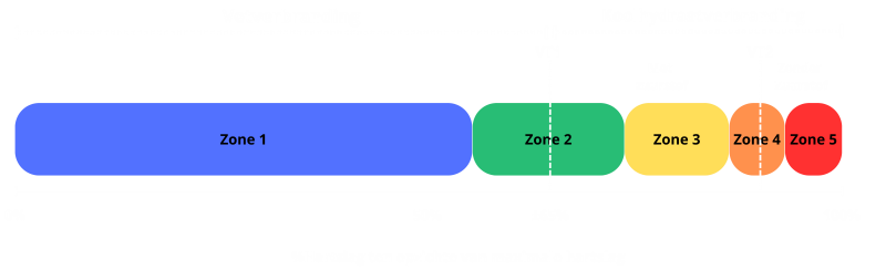 Voor het hardlopen maken we gebruik van het 5-zone model. Door het toepassen van trainingsmethoden in de verschillende zones kunnen we de maximale inspanningsvermogen (VO2max), Eerste omslagpunt (VT1), en Tweede omslagpunt (VT2) verbeteren.